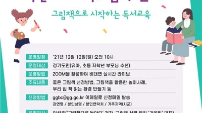 경기도, 경기평화광장북카페 12월 문화의 날 행사 온라인 방식으로 진행 그림책 활용한 다양한 독서놀이로 올바른 독서법 등 교육 - 이선주 작가 ‘책 읽는 가족, 꿈꾸는 아이’ 12월 12일 오전 10시 - 조경희 작가 ‘엄마 자판기 그림...