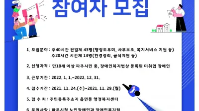 2021-11-24 02:12:27파주시, 2022년 장애인일자리사업 참여자 모집