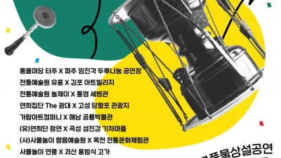 파주도시관광공사, 관광과 전통예술이 융합하는 ‘어울마당 풍물세상’펼쳐 파주도시관광공사(사장 정학조)가 문화체육관광부에서 주최하고 (재)전통공연예술진흥재단이 주관하는 ‘2021 전국풍물상설공연 공모사업’...