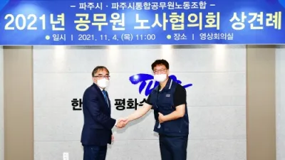 2021-11-05 00:53:40파주시, 2021년 공무원 노사협의회 본격 돌입 -파주시·파주시통합공무원노동조합 상견례