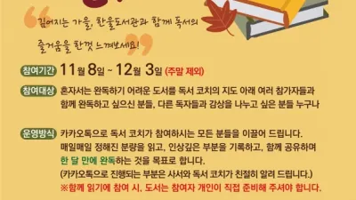 파주시 한울도서관, 랜선 독서프로그램 ‘코스모스 30일 함께 읽기’개최 파주시 한울도서관이 11월 8일부터 12월 3일까지 4주 동안 랜선 독서프로그램 ‘코스모스 30일 함께...