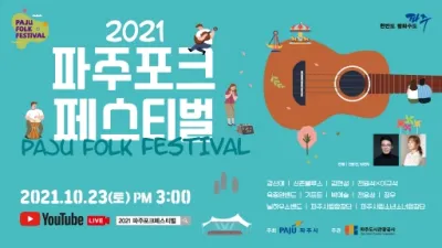 “2021파주포크페스티벌” 코로나시대 화합과 평화의 무대 개최... 강산애, 신촌블루스, 육중완밴드 등 출연 파주시가 주최하고 파주도시관광공사가 주관하는 &ls...