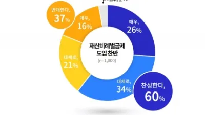 경기도민 10명 중 6명, 재산비례벌금제 도입 ‘찬성’ ○ 경기도, 도민 1,000명 대상 ‘재산비례벌금제’ 관련 여론조사 결과 발표 - 도입 찬성한다 ‘60%’, 반대한다 ‘37%...