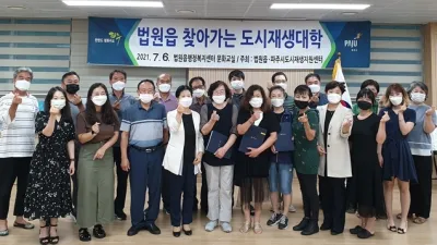 파주시, 2021 찾아가는 도시재생대학 수료식 개최 파주시는 지난 6일 ‘2021 찾아가는 도시재생대학(법원읍)’을 주민들의 많은 참여 속에서 성공적으로 마무리했다. 법원읍 찾아가는 도시재생대학은 ...