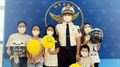 파주경찰서, 이륜차 안전운행을 위한 댓글사연 공모 당첨자 2가족 초청 안전모 전달