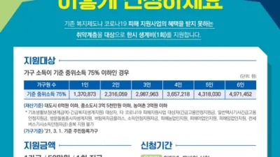 파주시, 코로나19로 소득이 감소한 가구에 ‘한시적 생계지원’