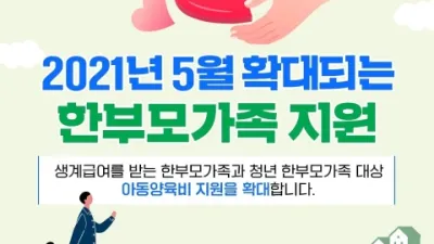 파주시, 한부모가족지원 아동양육비 지원대상 확대 파주시는 지난해 10월 개정된 「한부모가족지원법」이 시행됨에 따라 올 5월부터 혼인여부와 관계없이 대한민국 국적의 아동을 양육하는 다문화 한부모가족과 생계급여를 받는 한부모가족(중위소...