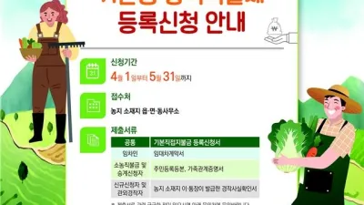 4.1일부터 2021년 기본형 공익직접지불금 신청·접수 시작 - 농지 소재지 읍·면·동에 등록신청서 제출 - 국립농산물품질관리원 파주·고양사무소(소장 소병록, 이하 파주·고양농관원)...