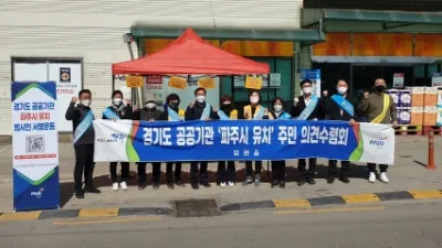 파주시 법원읍, 경기도 공공기관 유치에 적극 나서 파주시 법원읍 사회단체가 경기도 공공기관 파주시 유치를 위해 힘을 보태고 있다. 지난 30일, 법원읍 주민들이 법원읍 시가지 일대에서 경기도 산하 공공기관 파주시 유치 ...