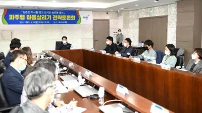 파주형 마을살리기사업 미래 백년대계 초석 다진다 파주시는 12일 파주형 마을살리기 사업 활성화를 위한 전략토론회를 개최했다. 시는 그동안 추진한 파주형 마을살리기 사업을 돌아보고 지속 가능한 파주형 마을살리기 사업의 정...