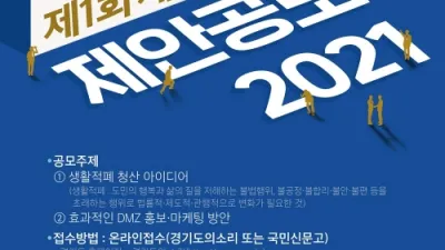 경기도, 제1회 ‘새로운 경기 제안 공모 2021’ 개최 ○ 2월 1일 ~ 3월 12일 국민신문고 공모제안 및 ‘경기도의 소리’ 홈페이지에서 접수 ○ 총 7팀에게 1등 최대 500만 원 등 총 1,410만원 지급 ...