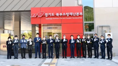 북부소방재난본부 합동청사 개청‥이재명 “경기북부 도민안전 컨트롤 타워 기대” ○ 경기도북부소방재난본부-의정부소방서 합동청사 8일 개청식 - 의정부시 금오동에 지하1층 지상6층 연면적 10,837㎡ 규모로 건립 - 근무인원 324명, 2...