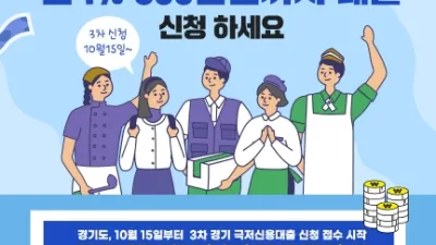경기도, ‘고금리 이용자 ’, ‘2030청년층 ’에 연 1%, 300만원까지 대출 ○ 도, 10월 15일부터 3차 경기 극저신용대출 신청 접수 시작 - ‘고금리 이용자 대출’, ‘청...