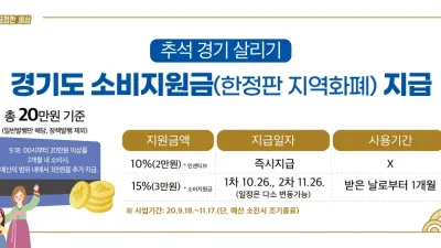 2020-09-22 08:24:24경기도 한정판 지역화폐 지급 시작. 사용액·신규 등록 모두 2배 늘어