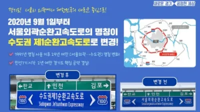 ‘수도권 제1순환선’ 9월 1일, 첫 출발 드라이브 ○ 1991년부터 사용한 ‘서울외곽순환선’ 명칭 9월 1일부터 ‘수도권제1순환선’으로 변경 - 경기도, 지난 3개월 동안 도로표지판 정비 및...
