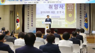 2020-07-12 10:16:50장현국 의장, 핵심기조 ‘디딤돌 의회’ 내걸고 후반기 본격 돌입 -10일 제10대 경기도의회 의장단 전·후반기 이·취임식