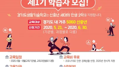 2020-05-27 03:11:22“인생 2막, ‘경기도생활기술학교’에서 설계하세요” -도, 5060 신중년 세대 대상 2020년 교육생 모집