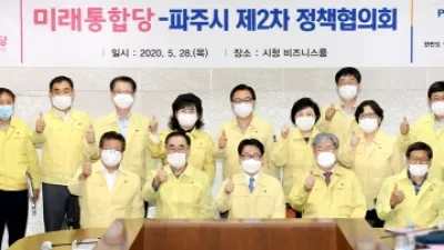 포스트 코로나 상생 협의, 미래통합당-파주시 정책회의 파주시는 28일 오후 5시 파주시청에서 미래통합당 시의원들과 정책회의를 열고 ‘포스트 코로나’ 대응 추진 등 지역 현안 해결을 위해 힘을 모으기로 했다. &...