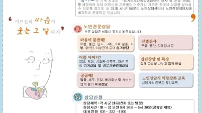 경기도, 도내 노인복지 증진을 위한 ‘2020년 경기도 노인상담사업 활성화 계획’ 시행 ○ 상담시스템 데이터베이스 고도화, 도내 시·군 전체 노인상담센터 운영, 대상자를 선제적으로 발굴·지원하는 ‘주치상담사&rs...
