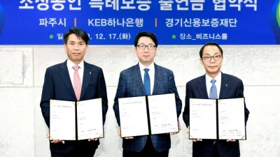 파주시, KEB하나은행과 소상공인 특례보증 출연금 협약식 개최 파주시는 17일 시청 비즈니스룸에서 KEB하나은행과 함께 소상공인 특례보증 출연금 협약식을 가졌다. 파주시는 지난 11월 ㈜신세계사이먼과 상생협약 체결을 통...