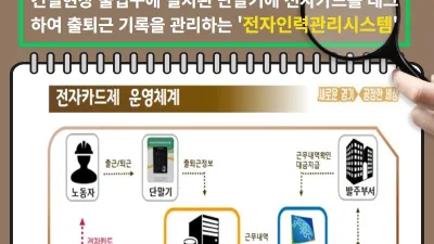 이재명, 공정한 건설문화·노동자 권익보호 토대 다질 ‘전자카드제’ 도입 ○ 경기도-건설근로자공제회-KEB하나은행, 건설노동자 전자카드제 도입 업무협약 체결 - 전자카드제 원활한 운영 및 건설노동자 복리증진 약속 ○ 8월부터 경기도 및 ...