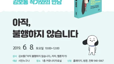 파주시 중앙도서관‘김보통 작가와의 만남’진행 파주시 중앙도서관은 오는 6월 8일 인기 작가 김보통을 초청해 청소년 및 성인 독자들과 소통의 시간을 갖는다. 이번 강연에서 작가는 ‘아직, ...