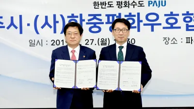 파주시, (사)한중평화우호협의회 업무협약 체결 - 한·중 교류협력 및 관광활성화를 위한 파주시가 27일 한·중 문화교류와 관광산업 활성화를 위해 (사)한중평화우호협의회와 업무협약을 체결했다. 이...