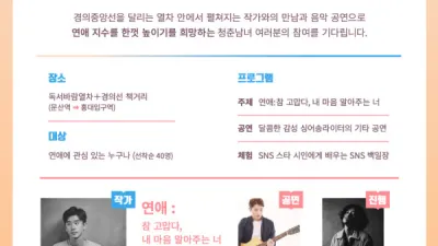 2018-05-28 14:20:00[파주시 교육지원과]독서바람열차, 청년들의 마음 위로하는‘감성북콘서트’ 개최