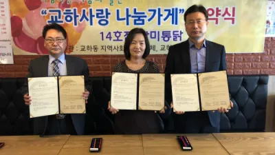 파주시 교하동, 교하사랑 나눔 가게 14호점 삼미통닭 선정 협약식 개최 파주시 교하동 행정복지센터(동장 윤덕규)는 지난 4일 교하사랑협의체가 교하사랑 나눔 가게 14호점으로 삼미통닭을 선정하고 업무 협약식을 체결했다고 밝혔다. 삼미통닭은 문발동에 위치한 가게로 평소 ...