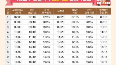 파주시, 마장호수 흔들다리(7500번) 증차 운행 파주시는 5월 연휴기간(5.5.~5.7.)에 맞춰 마장호수흔들다리 운행 노선인 7500번을 3대에서 4대로 증차 운행할 계획이다. 마장호수흔들다리 운행 노선인 7500번은 파주시 대표 관광지로 떠오르는 마장호수 흔...