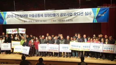 파주시,‘2018 주민참여형 마을공동체 정원만들기’대상지 선정 - 5개 읍면동 7개 마을, 파주시의 마을정원으로 선정 파주시는 지난 14일 주민이 디자인하고 조성하는 ‘2018 주민참여형 마을공동체 정원만들기’ 공모사업 오디션 심사를 개최했다. ...