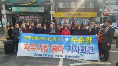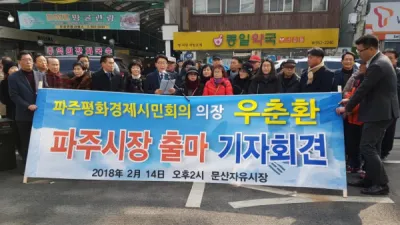 "지역에 맞는 맞춤형 설계를 실현시키겠다." 우춘환의장 파주시장 출마선언 파주평화경제시민회의 우춘환의장이 2월14일 오후2시 문산자유시장 공영주차장입구에서 파주시장 출마를 선언했다. 경청하고 공감하며 실천하는 시정이 되어야한다고 말한 우의장은 파주가 더 이상 ...