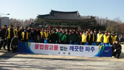 파주시 교하동, 봄 맞이 불법광고물 합동정비 실시 파주시 교하동행정복지센터는 19일 주민자치위원회, 실버경찰대, 새마을 등 민간단체 50여명과 합동으로 불법광고물 정비 활동을 실시했다. 이번 합동정비는 그간 한파특보로 인한 추운날씨가 지속되면서 잠시 주춤했던 불법...