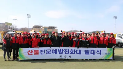 파주시, 봄철 산불전문예방진화대 발대식 실시! 파주시는 2월 1일부터 5월 15일까지 봄철 산불조심기간을 맞이해 지난 12일 파평 체육공원에서 산림자원을 산불로부터 보호하기 위해 결의를 다지는 ‘산불전문예방진화대 발대식’을 실시했다. 발대식에는 백찬호 파주...