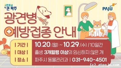 2025-10-10 12:34:29파주시, 하반기 광견병 예방접종 실시