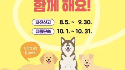 파주시, 반려견 등록 자진신고 기간 운영 - 자진신고 기간 (8.5.~9.30.) 운영 후 10월 중 집중 단속