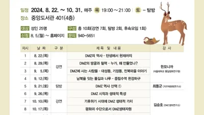 파주 중앙도서관,‘접경에서 사유하는 평화와 공존’프로그램 운영 - 문체부 선정 2024년‘길 위의 인문학’8월 22일부터 10월 31일까지 추진 파주시 중앙도서관은 문화체육부 ...
