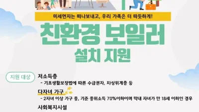 파주시, 저소득·취약계층 친환경 보일러 교체비용 60만 원 지원 - 올해부터 중위소득 70% 이하 다자녀·사회복지시설도 포함 - 2월 13일부터 신청 가능, 예산 소진 시 종료 파주시는 친환경 보일러를 설치...