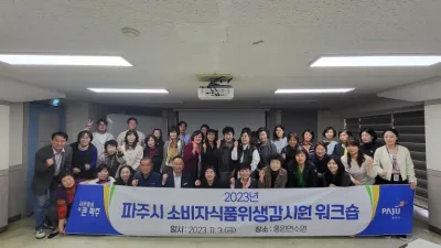 파주시, 소비자식품위생감시원 워크숍…대민 행정역량·전문성 강화 - 건강하고 안전한 먹거리 환경 조성한다 파주시는 지난 3일 홍원연수원에서 파주시 소비자식품위생감시원 60명을 대상으로 2023년 소비자식품위생...