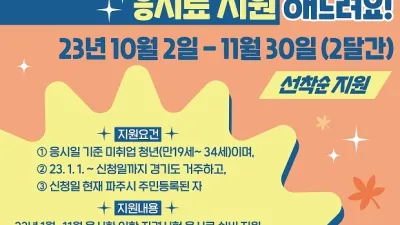 2023-10-11 03:02:24파주시, 미취업청년 어학·자격시험 응시료 최대 30만원 지원 - 회당 최대 10만원, 연3회까지