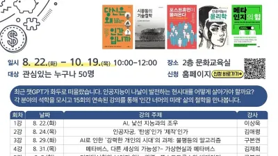 파주시 한빛도서관, 8월 22일~10월 19일 독서아카데미 운영 - 챗지피티(GPT) 시대, 인간 너머의 미래…50명 선착순 모집