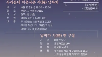 2023-08-01 02:42:17파주시 한빛도서관, 8월 시(詩)를 주제로 독서프로그램 운영