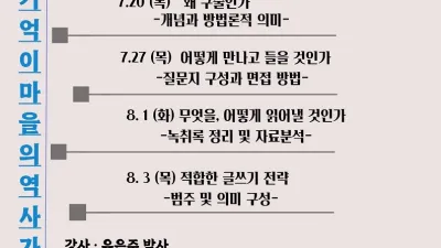 2023-06-30 02:47:02파주중앙도서관서 7월 20일부터 8월 3일까지 구술 채록강좌 열린다