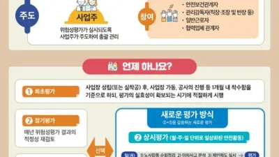 고용노동부 고양지청, 위험성평가 집중 안내·점검의 날 운영 고용노동부 고양지청은 6월 말까지 “새로운 위험성평가 집중 확산 기간”으로 정하고, 5월 24일 2023년 제10차 현장점검의 날에 최근 제도개편을 통...