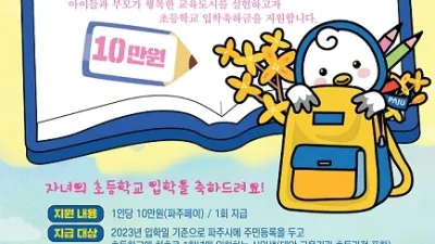 2023-04-19 09:05:59파주시, 초등학교 입학축하금 지원…행복한 교육도시 실현