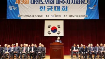 파주시, 제3회 대한노인회파주시지회장기 한궁대회 개최 파주시는 14일 파주시민회관 대공연장에서 ‘제3회 대한노인회파주시지회장기 한궁대회’를 개최했다. 이날 대회에는 김진기 파주시 부시장 등 초청내빈...