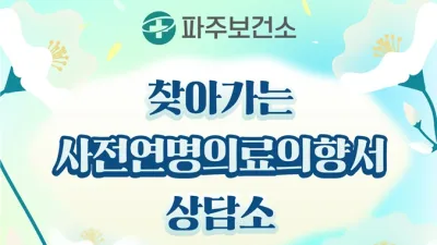 파주시, ‘찾아가는 사전연명의료의향서 상담소’운영 - 누구나 존엄한 죽음을 선택할 수 있는 권리 파주시는 연명의료결정 제도 활성화를 위해 ‘찾아가는 사전연명의료의향서 상담소’를 운영하고 있...
