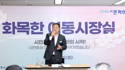 파주시 문산읍에도‘화목한 이동시장실’문 활짝…소통행정 이어가 파주시는 4월 11일 문산읍 행정복지센터 어울림마당에서 이동시장실을 열고 주민들과 만남을 가졌다. 지난번 운정4동에서 화목한 이동시장실 ...