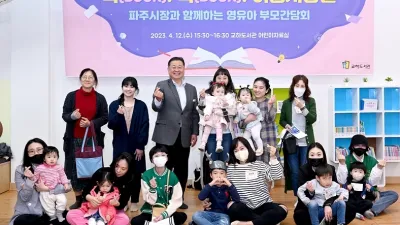 파주 교하도서관, 책과 어린이가 함께한 이동시장실 운영 김경일 파주시장이 12일 ‘제1회 도서관의 날’을 맞아 교하도서관에서 화목한 이동시장실을 열고 영유아 부모 및 시민들과 만남을 가졌다. &nb...