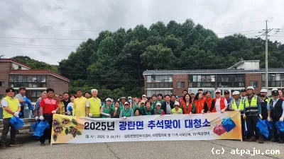 파주시 광탄면은 지난 24일 광탄 시가지와 분수천 일대에서 민관 합동으로 추석맞이 대청소를 실시했다. 이번 대청소는 추석을 맞아 고향을 찾는 귀성객과 시민들에게 깨끗하고 쾌적한 환경을 제공하고자 실시하게 됐다. 이날 행사에는 광탄...